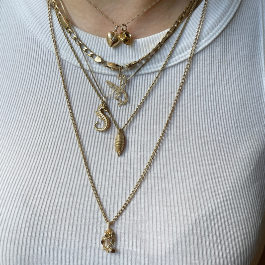 First of all I have to say CNOJ’s live shows are so fun and they have so much cool jewelry. I recently bought their mariner chain, a connector, and a key charm during a couple of their live shows and I love them. The connector is so versatile and sturdy. The key charm is adorable and the perfect size. As for the 20” mariner chain, I was originally looking for something wider (around 3-4mm) but the 2.3mm turned out to be exactly what i needed especially for my skinny neck. It’s very substantial in weight (around 7gr) and feels really nice and solid. I hope to find more treasures from them in the future! Pictured are the mariner chain and the connector attached to it (with some charms) and the key charm is on the chain above.