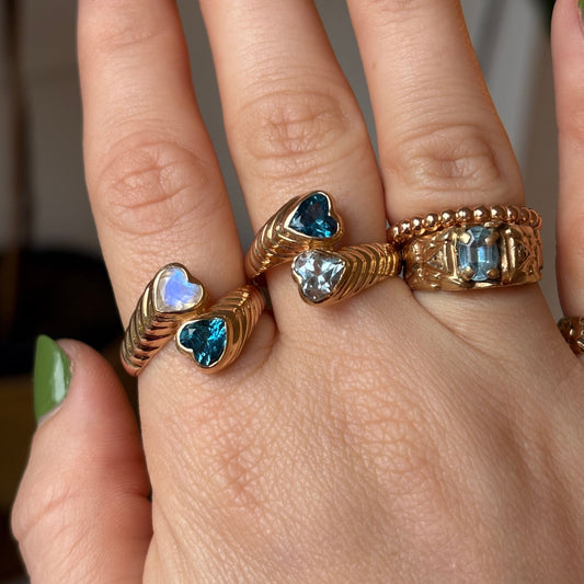 14k fluted tu y yo ring with london dark blue topaz & moonstone gems