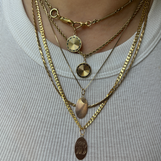 First of all I have to say CNOJ’s live shows are so fun and they have so much cool jewelry. I recently bought their mariner chain, a connector, and a key charm during a couple of their live shows and I love them. The connector is so versatile and sturdy. The key charm is adorable and the perfect size. As for the 20” mariner chain, I was originally looking for something wider (around 3-4mm) but the 2.3mm turned out to be exactly what i needed especially for my skinny neck. It’s very substantial in weight (around 7gr) and feels really nice and solid. I hope to find more treasures from them in the future! Pictured are the mariner chain and the connector attached to it (with some charms) and the key charm is on the chain above.