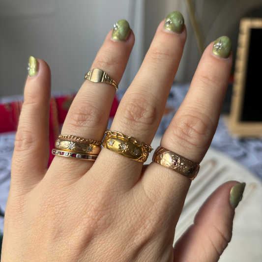 I purchased this signet ring from a live sale on Instagram. It is prettier in person than any online photograph. The moment I got it, I put it on my hand and it hasn’t come off since!