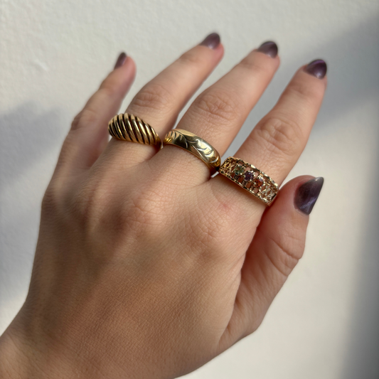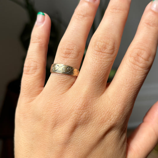 Sold out14k engraved swirls stacker ring