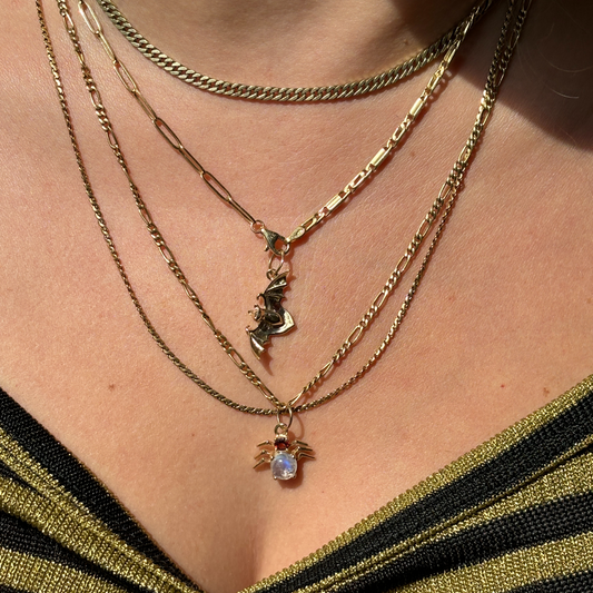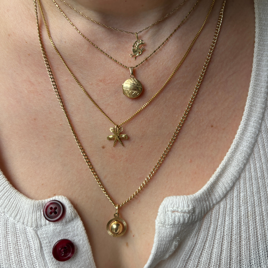 First of all I have to say CNOJ’s live shows are so fun and they have so much cool jewelry. I recently bought their mariner chain, a connector, and a key charm during a couple of their live shows and I love them. The connector is so versatile and sturdy. The key charm is adorable and the perfect size. As for the 20” mariner chain, I was originally looking for something wider (around 3-4mm) but the 2.3mm turned out to be exactly what i needed especially for my skinny neck. It’s very substantial in weight (around 7gr) and feels really nice and solid. I hope to find more treasures from them in the future! Pictured are the mariner chain and the connector attached to it (with some charms) and the key charm is on the chain above.
