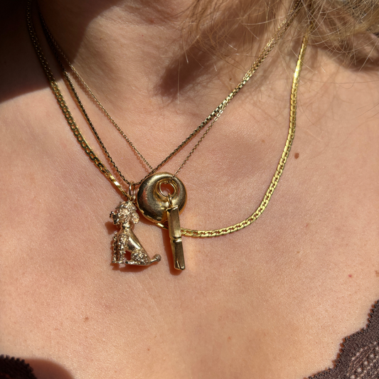 First of all I have to say CNOJ’s live shows are so fun and they have so much cool jewelry. I recently bought their mariner chain, a connector, and a key charm during a couple of their live shows and I love them. The connector is so versatile and sturdy. The key charm is adorable and the perfect size. As for the 20” mariner chain, I was originally looking for something wider (around 3-4mm) but the 2.3mm turned out to be exactly what i needed especially for my skinny neck. It’s very substantial in weight (around 7gr) and feels really nice and solid. I hope to find more treasures from them in the future! Pictured are the mariner chain and the connector attached to it (with some charms) and the key charm is on the chain above.
