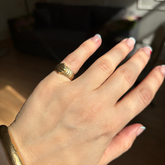 I purchased this signet ring from a live sale on Instagram. It is prettier in person than any online photograph. The moment I got it, I put it on my hand and it hasn’t come off since!