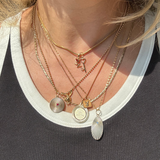 First of all I have to say CNOJ’s live shows are so fun and they have so much cool jewelry. I recently bought their mariner chain, a connector, and a key charm during a couple of their live shows and I love them. The connector is so versatile and sturdy. The key charm is adorable and the perfect size. As for the 20” mariner chain, I was originally looking for something wider (around 3-4mm) but the 2.3mm turned out to be exactly what i needed especially for my skinny neck. It’s very substantial in weight (around 7gr) and feels really nice and solid. I hope to find more treasures from them in the future! Pictured are the mariner chain and the connector attached to it (with some charms) and the key charm is on the chain above.