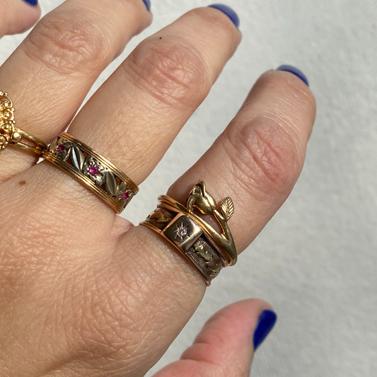 10k Victorian braided hair mourning ring sz7 (not sizable), don't get wet