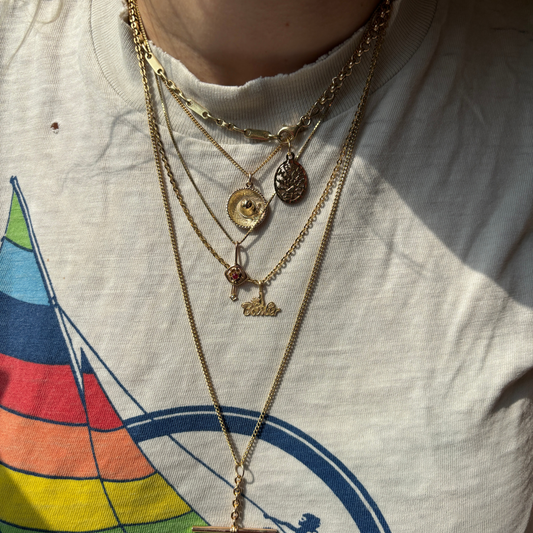 First of all I have to say CNOJ’s live shows are so fun and they have so much cool jewelry. I recently bought their mariner chain, a connector, and a key charm during a couple of their live shows and I love them. The connector is so versatile and sturdy. The key charm is adorable and the perfect size. As for the 20” mariner chain, I was originally looking for something wider (around 3-4mm) but the 2.3mm turned out to be exactly what i needed especially for my skinny neck. It’s very substantial in weight (around 7gr) and feels really nice and solid. I hope to find more treasures from them in the future! Pictured are the mariner chain and the connector attached to it (with some charms) and the key charm is on the chain above.