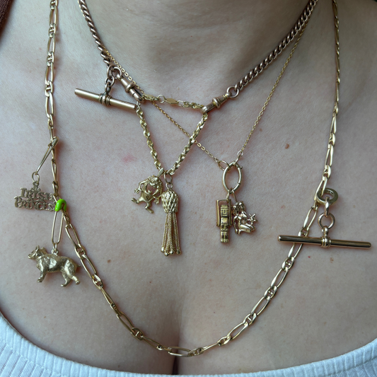 First of all I have to say CNOJ’s live shows are so fun and they have so much cool jewelry. I recently bought their mariner chain, a connector, and a key charm during a couple of their live shows and I love them. The connector is so versatile and sturdy. The key charm is adorable and the perfect size. As for the 20” mariner chain, I was originally looking for something wider (around 3-4mm) but the 2.3mm turned out to be exactly what i needed especially for my skinny neck. It’s very substantial in weight (around 7gr) and feels really nice and solid. I hope to find more treasures from them in the future! Pictured are the mariner chain and the connector attached to it (with some charms) and the key charm is on the chain above.