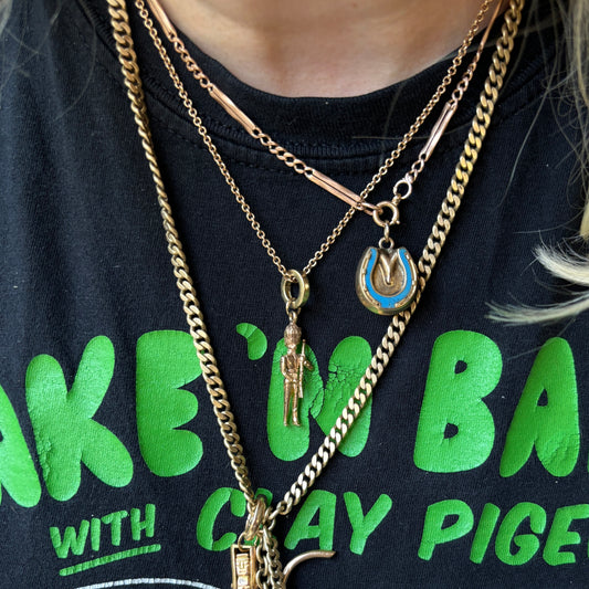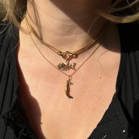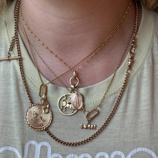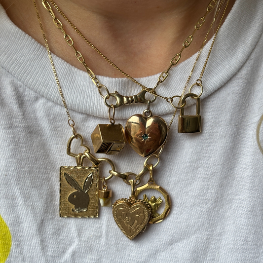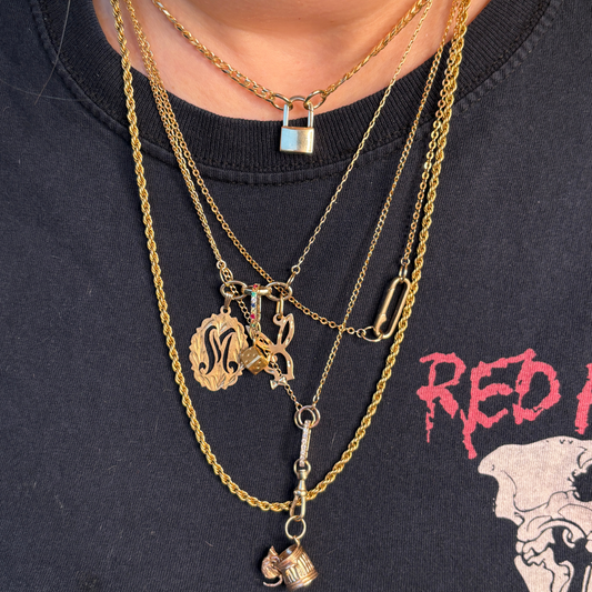 First of all I have to say CNOJ’s live shows are so fun and they have so much cool jewelry. I recently bought their mariner chain, a connector, and a key charm during a couple of their live shows and I love them. The connector is so versatile and sturdy. The key charm is adorable and the perfect size. As for the 20” mariner chain, I was originally looking for something wider (around 3-4mm) but the 2.3mm turned out to be exactly what i needed especially for my skinny neck. It’s very substantial in weight (around 7gr) and feels really nice and solid. I hope to find more treasures from them in the future! Pictured are the mariner chain and the connector attached to it (with some charms) and the key charm is on the chain above.