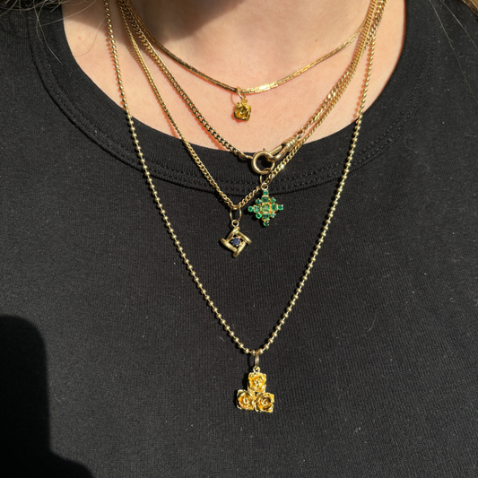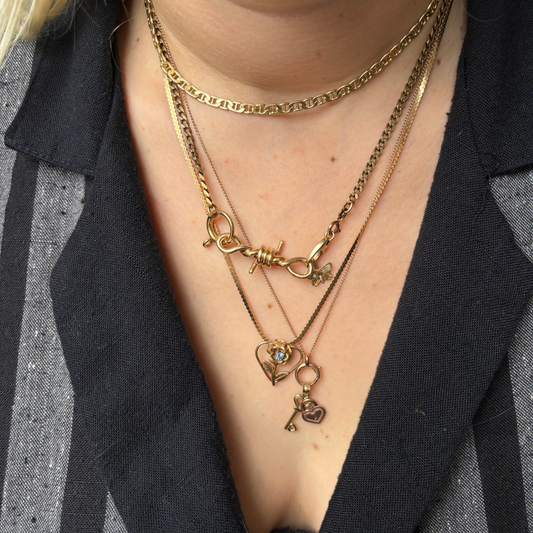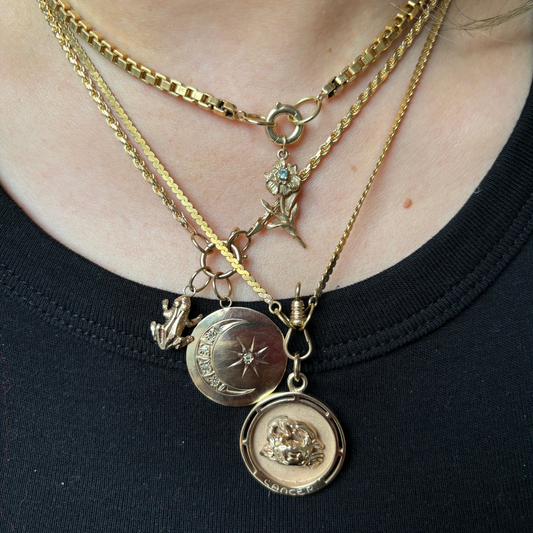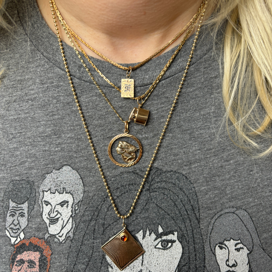 First of all I have to say CNOJ’s live shows are so fun and they have so much cool jewelry. I recently bought their mariner chain, a connector, and a key charm during a couple of their live shows and I love them. The connector is so versatile and sturdy. The key charm is adorable and the perfect size. As for the 20” mariner chain, I was originally looking for something wider (around 3-4mm) but the 2.3mm turned out to be exactly what i needed especially for my skinny neck. It’s very substantial in weight (around 7gr) and feels really nice and solid. I hope to find more treasures from them in the future! Pictured are the mariner chain and the connector attached to it (with some charms) and the key charm is on the chain above.