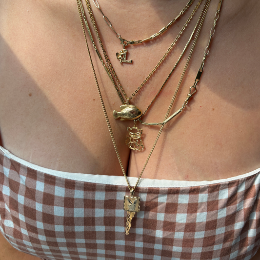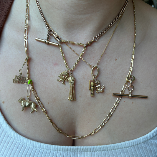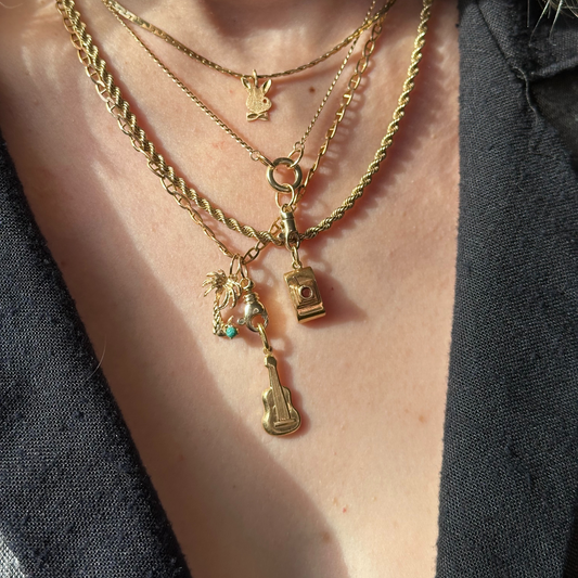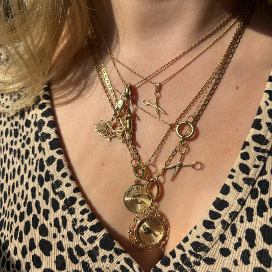 First of all I have to say CNOJ’s live shows are so fun and they have so much cool jewelry. I recently bought their mariner chain, a connector, and a key charm during a couple of their live shows and I love them. The connector is so versatile and sturdy. The key charm is adorable and the perfect size. As for the 20” mariner chain, I was originally looking for something wider (around 3-4mm) but the 2.3mm turned out to be exactly what i needed especially for my skinny neck. It’s very substantial in weight (around 7gr) and feels really nice and solid. I hope to find more treasures from them in the future! Pictured are the mariner chain and the connector attached to it (with some charms) and the key charm is on the chain above.