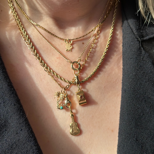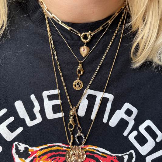 First of all I have to say CNOJ’s live shows are so fun and they have so much cool jewelry. I recently bought their mariner chain, a connector, and a key charm during a couple of their live shows and I love them. The connector is so versatile and sturdy. The key charm is adorable and the perfect size. As for the 20” mariner chain, I was originally looking for something wider (around 3-4mm) but the 2.3mm turned out to be exactly what i needed especially for my skinny neck. It’s very substantial in weight (around 7gr) and feels really nice and solid. I hope to find more treasures from them in the future! Pictured are the mariner chain and the connector attached to it (with some charms) and the key charm is on the chain above.