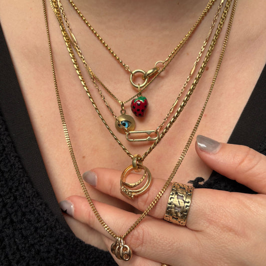 First of all I have to say CNOJ’s live shows are so fun and they have so much cool jewelry. I recently bought their mariner chain, a connector, and a key charm during a couple of their live shows and I love them. The connector is so versatile and sturdy. The key charm is adorable and the perfect size. As for the 20” mariner chain, I was originally looking for something wider (around 3-4mm) but the 2.3mm turned out to be exactly what i needed especially for my skinny neck. It’s very substantial in weight (around 7gr) and feels really nice and solid. I hope to find more treasures from them in the future! Pictured are the mariner chain and the connector attached to it (with some charms) and the key charm is on the chain above.