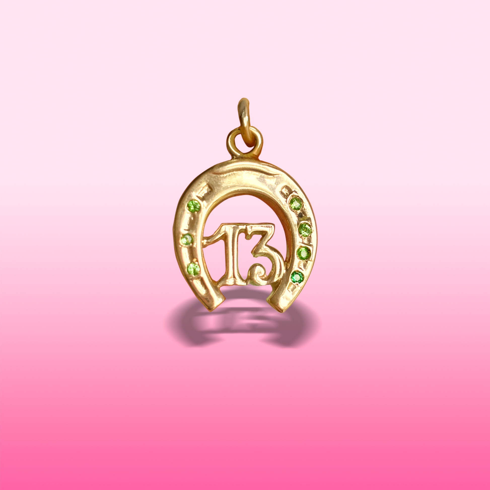This horseshoe was cloned from an antique one we found on etsy. The original had red puff paint marks where we upgraded with the brilliant tsavorite garnets.