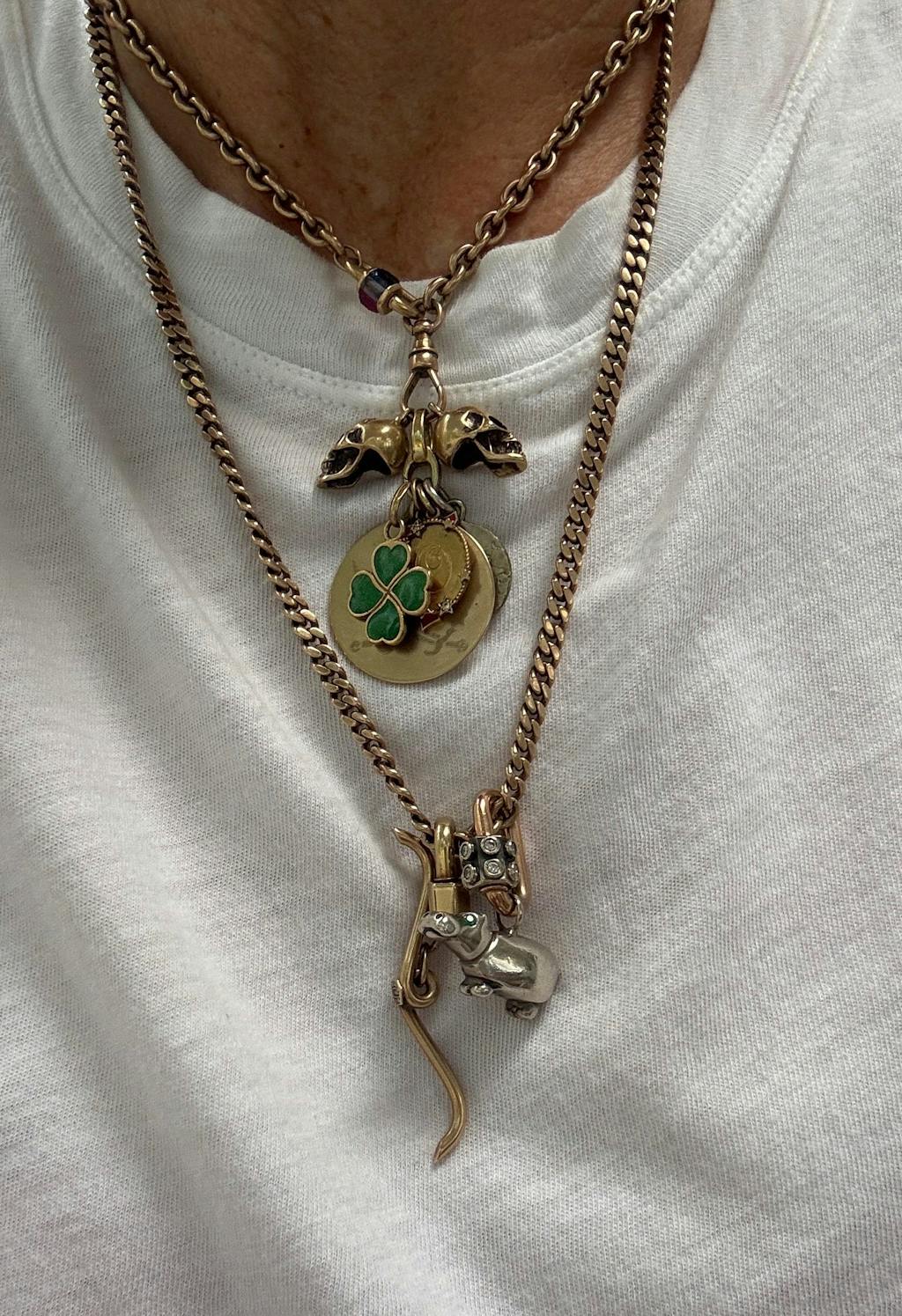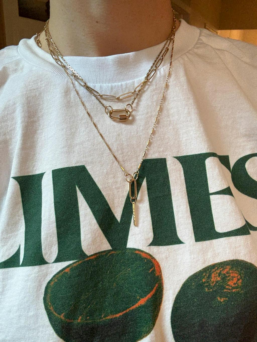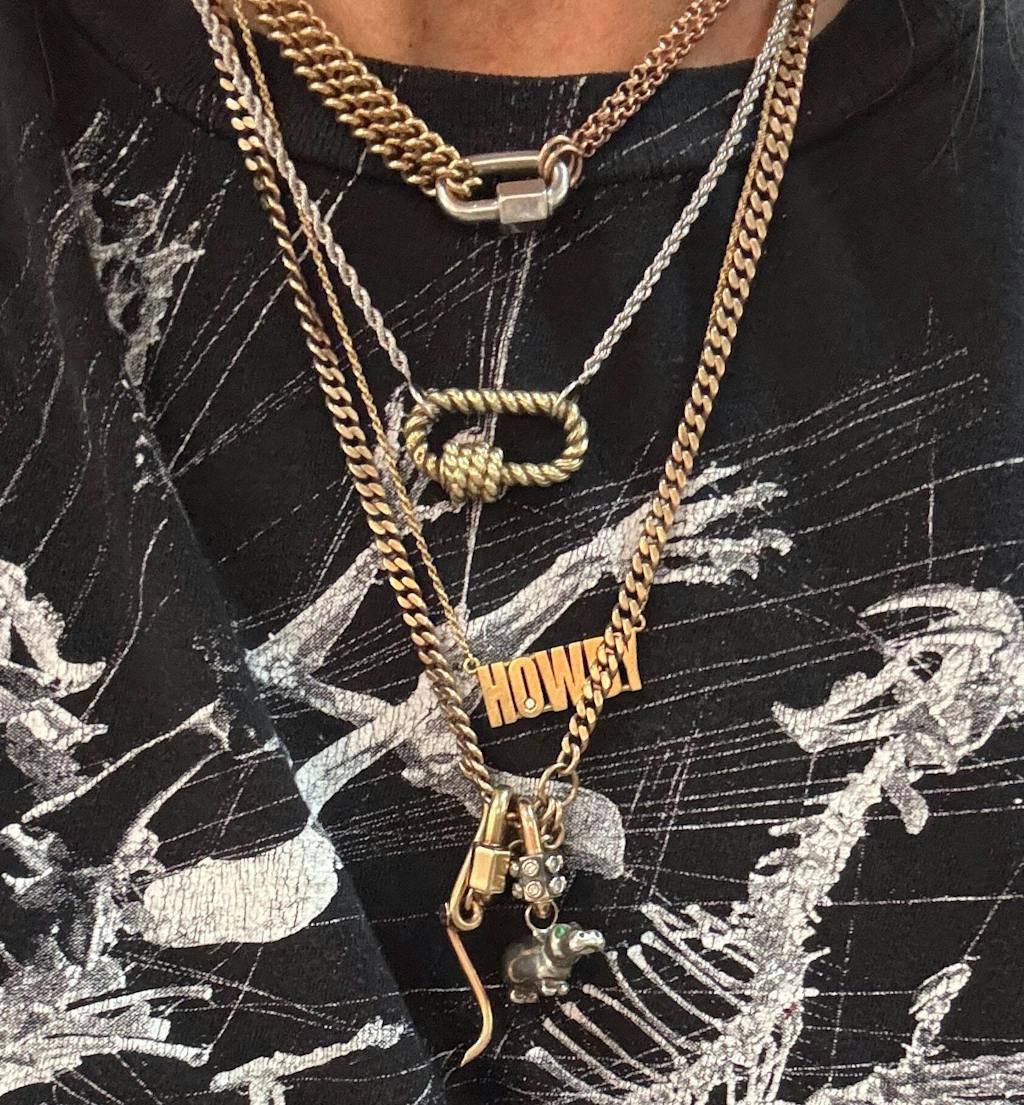 First of all I have to say CNOJ’s live shows are so fun and they have so much cool jewelry. I recently bought their mariner chain, a connector, and a key charm during a couple of their live shows and I love them. The connector is so versatile and sturdy. The key charm is adorable and the perfect size. As for the 20” mariner chain, I was originally looking for something wider (around 3-4mm) but the 2.3mm turned out to be exactly what i needed especially for my skinny neck. It’s very substantial in weight (around 7gr) and feels really nice and solid. I hope to find more treasures from them in the future! Pictured are the mariner chain and the connector attached to it (with some charms) and the key charm is on the chain above.
