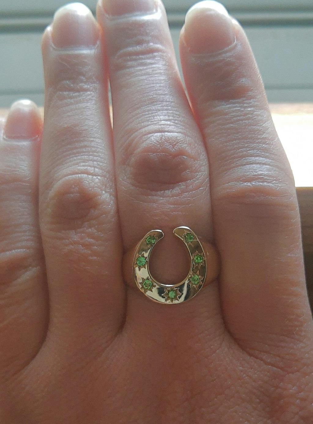 I ordered the tsavorite horseshoe ring and I'm over the moon with my first ever CNOJ purchase! Just as pictured, comfortable, sturdy, sustainable and all around every day showstopper. I'm obsessed and will be a return customer.