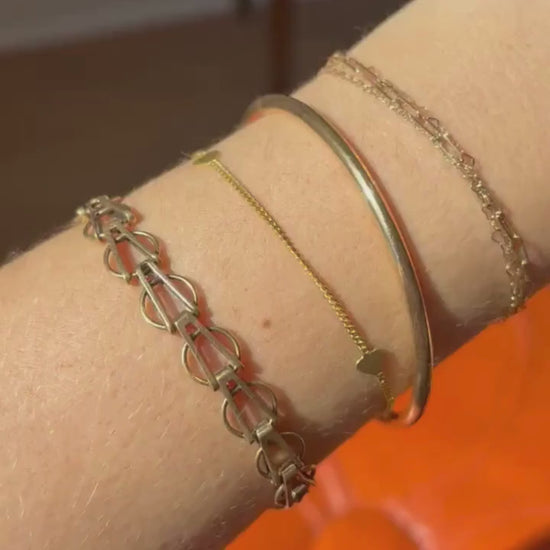 14k fancy mid century link bracelet with safety chain 7 3/8"