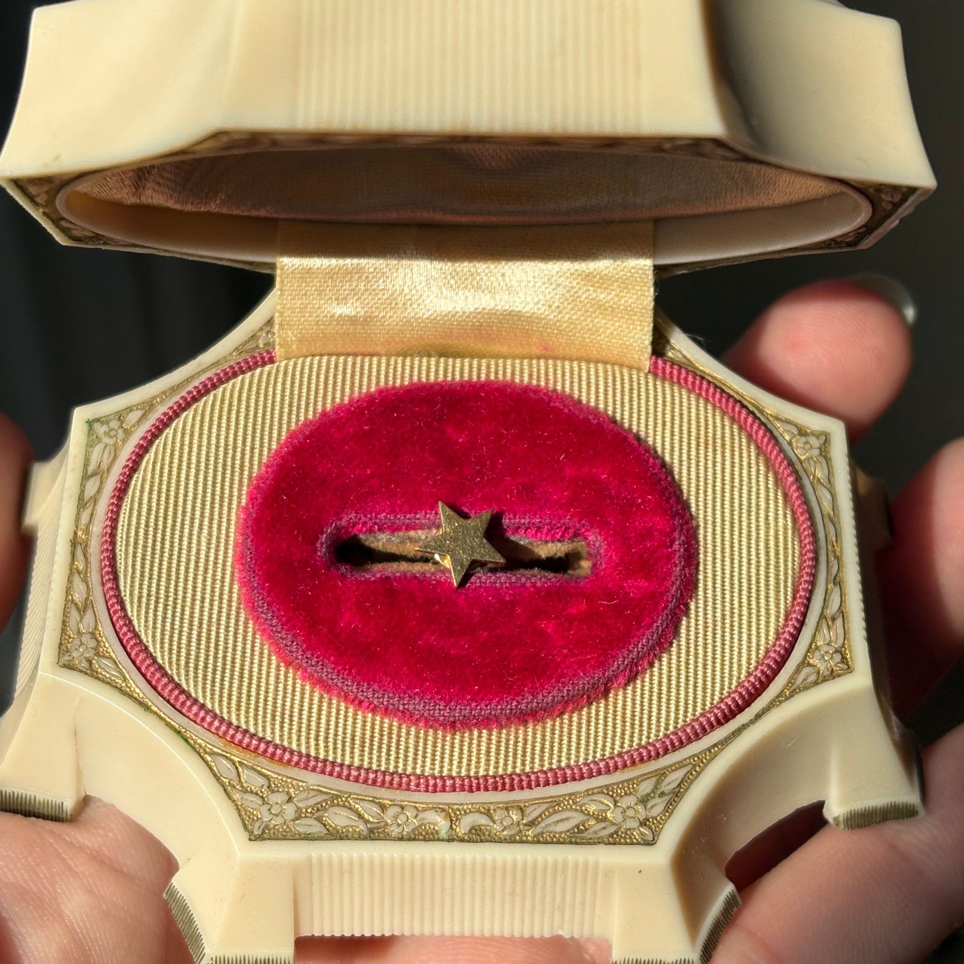 I bought my vintage 14k cut out ring on the IG live special! Shipping was quick. I appreciate the ring sizer that came with my order because I will definitely buy something from Code Name Orange Juice in the future!
