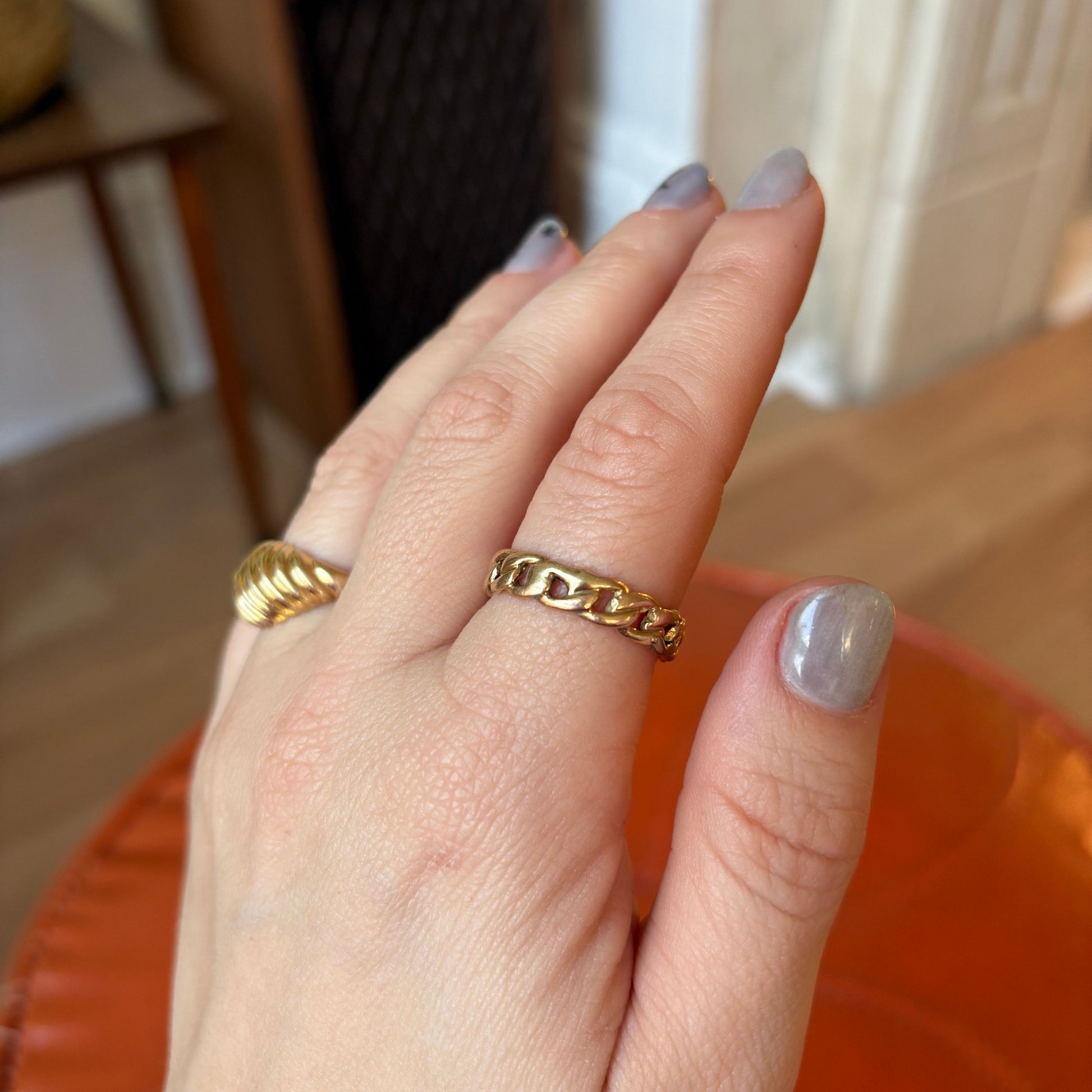 • Size: 9 (sizable up to 1/2 size); 4.7mm; If you need to size down, click here to add ring sizing service 1 to your order. If you need to size up email us for a sizing quote at info@codenameorangejuice.com or DM us on IG. If you need help figuring out your ring size, click here