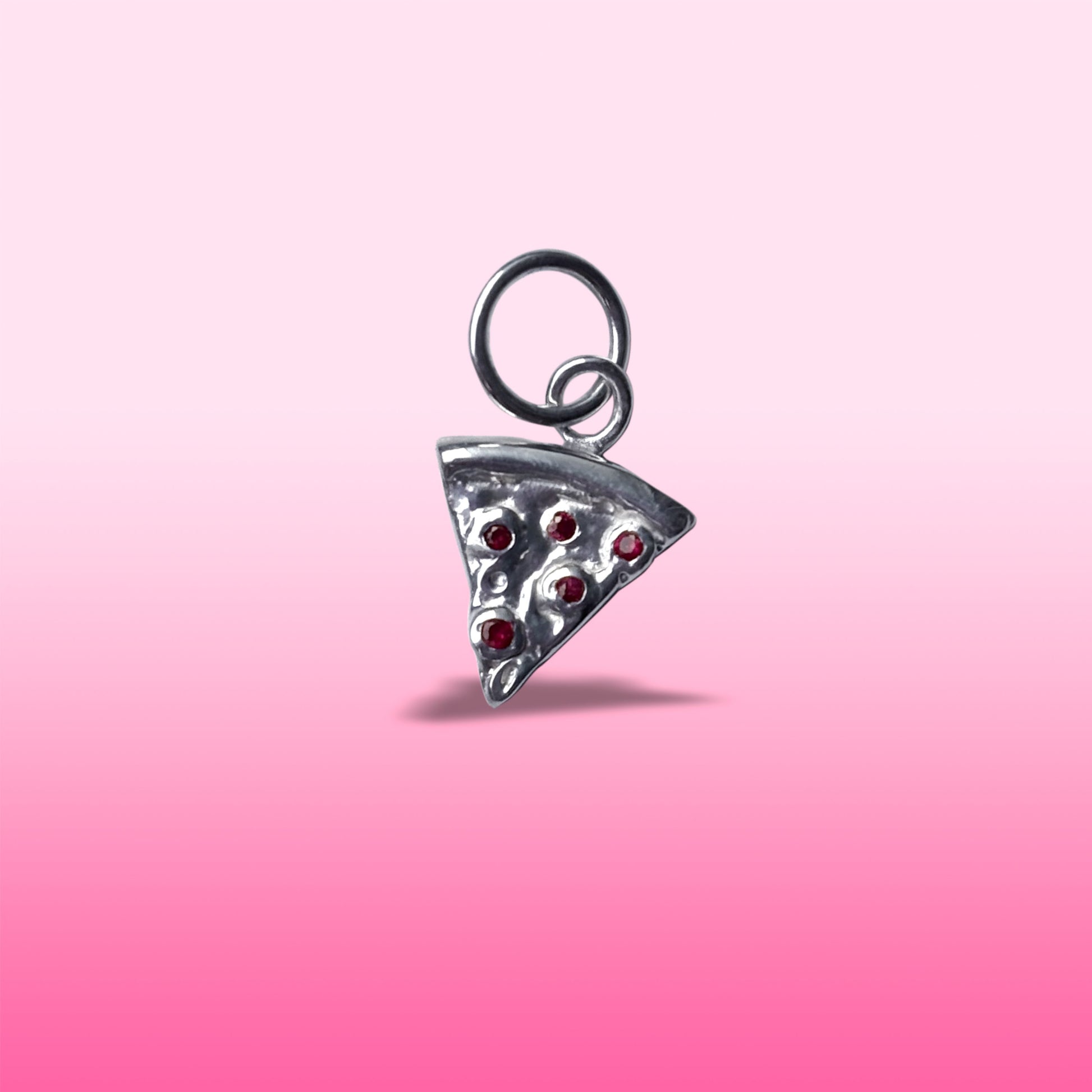 silver pizza with ruby pepperonis charm